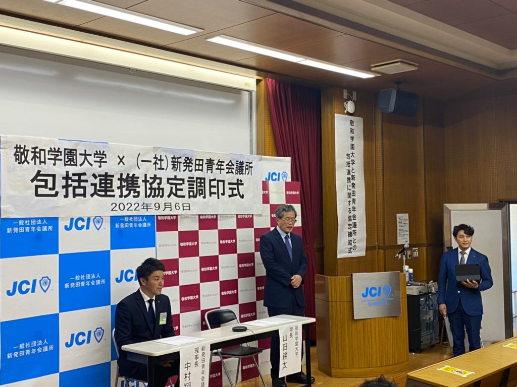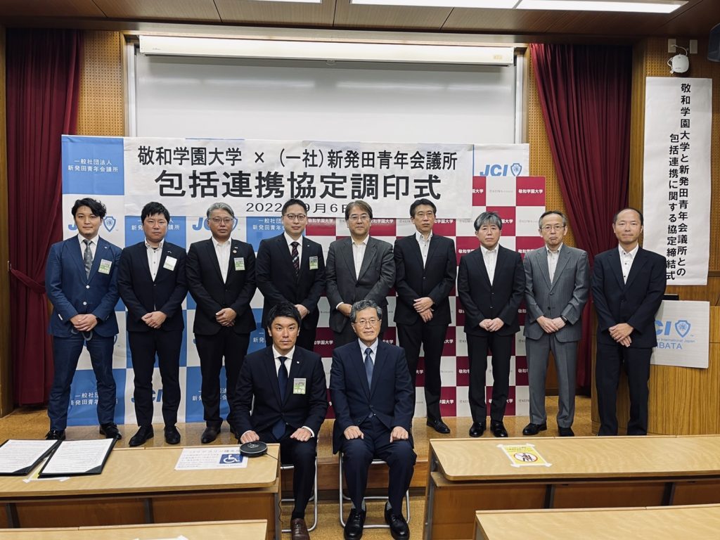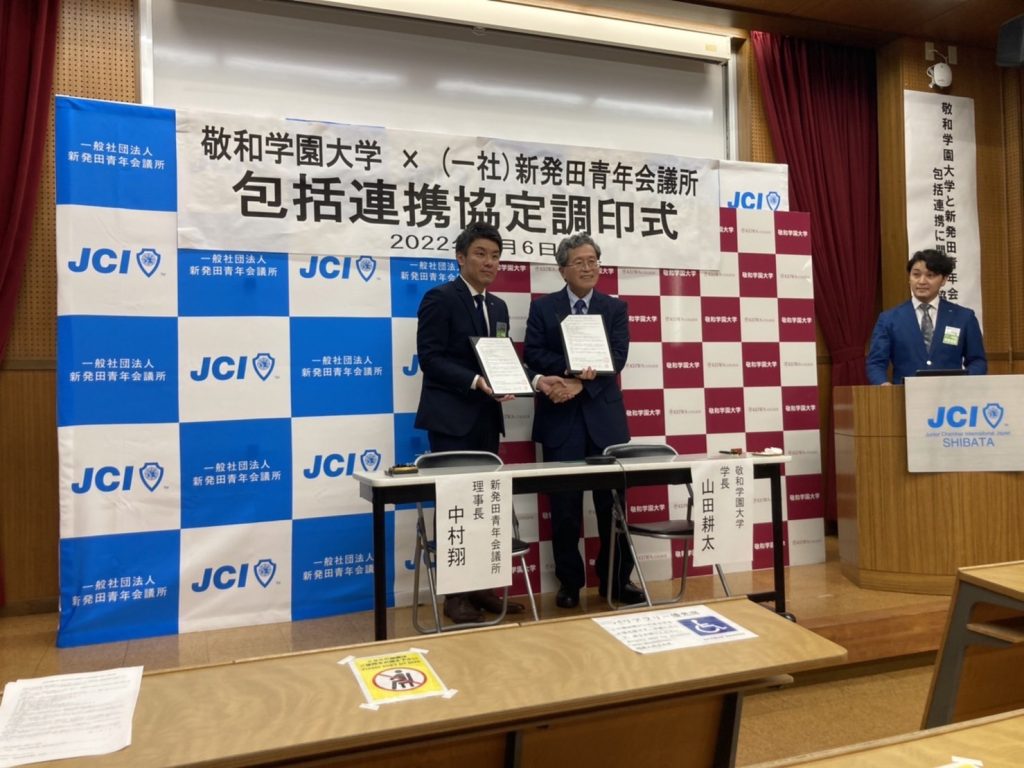 敬和学園大学と(一社)新発田青年会議所は、これから継続的にお互いの有する資源を生かしながら、地域社会・人材育成・学術の振興において協力していく事を協定し、調印をいたしました。