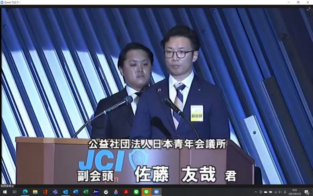 2021年度 京都会議が1月22日(金)~1月24日(日)にWeb開催されました。当青年会議所 顧問の佐藤 友哉 君が(公社)日本青年会議所 副会頭として出向しております。