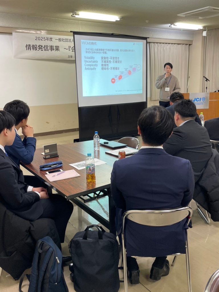講師に株式会社花安様の渡辺安之先輩をお招きし、会員の会社での活動をより良くするための講話を行っていただきました。