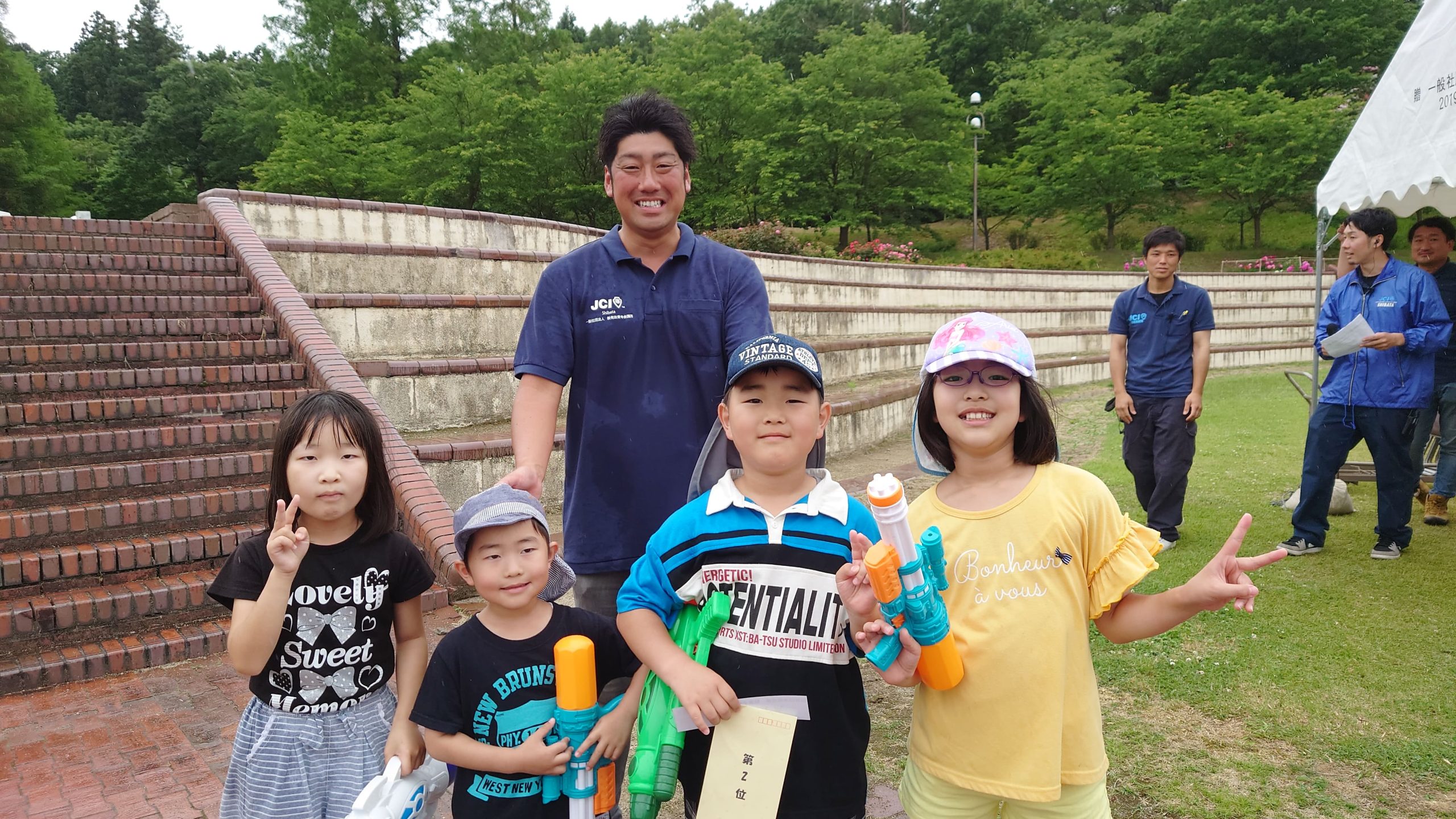 的を多く撃ち抜いた上位3チームには、若桑理事長から商品が授与されました!1位に輝いたチームには特別に素敵な水鉄砲が渡されました。みんなで仲良く使って遊んで欲しいです。