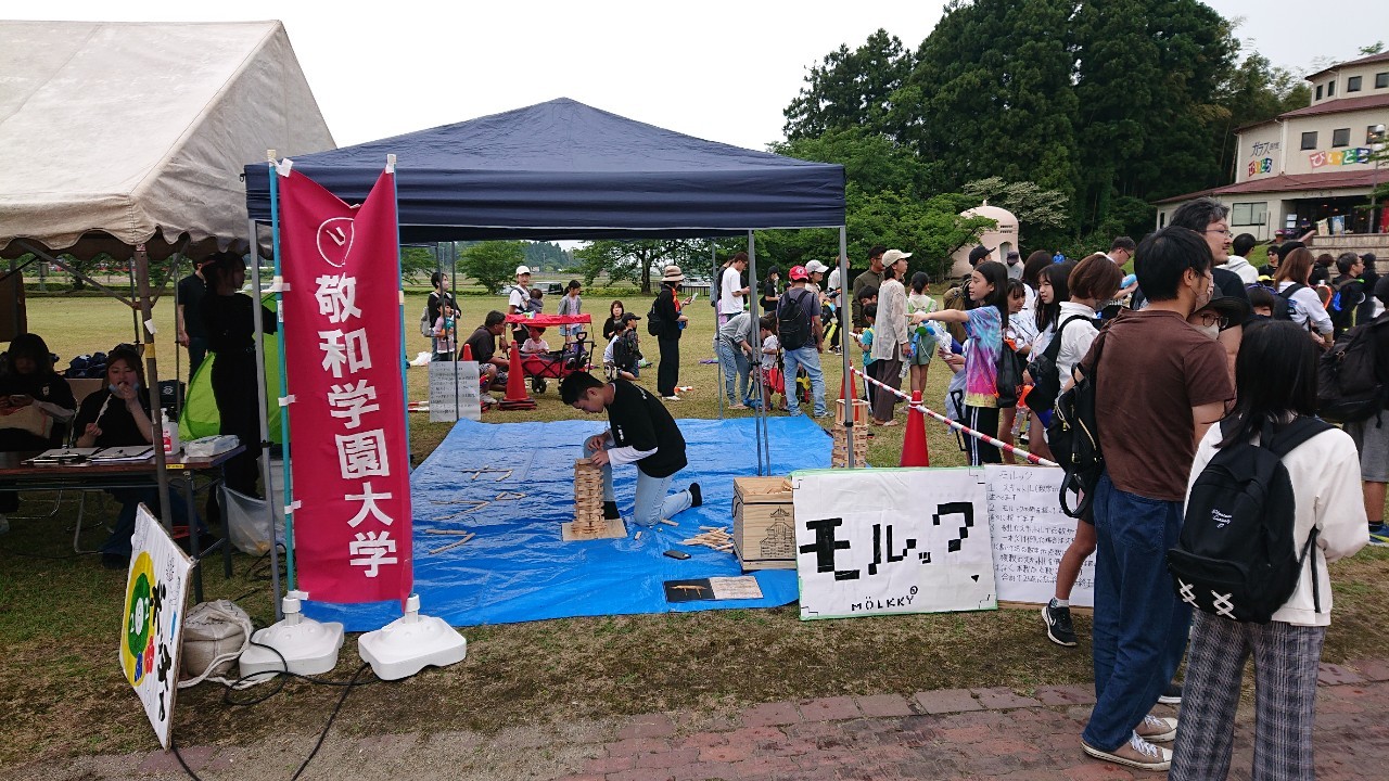 今回のEnjoyスパトゥーンin月岡温泉では、メインのりあるラン以外にも様々なブースが賛助会員や敬和学園大学の学生たちにより設営されました。ゲーム開始を待っている間、終わった後も各ブースで楽しんでもらっていました。