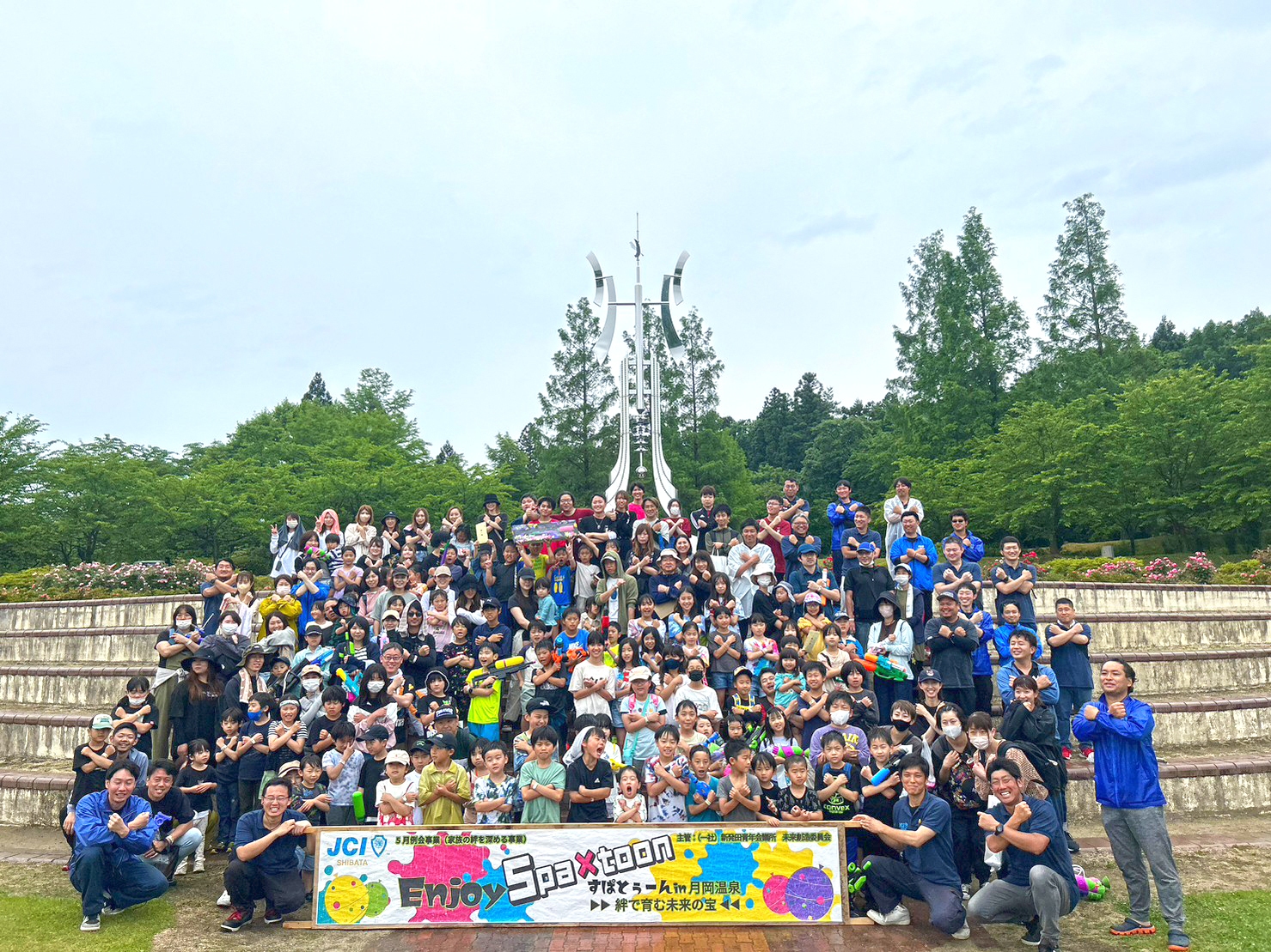 5月28日日曜日、5月例会「家族の絆を深める事業~Enjoyスパトゥーンin月岡温泉~絆で育む未来の宝」が、月岡温泉のカリオンパークにて開催しました。コロナ後初の親子参加の対外事業ということで、皆さん緊張しつつ念入りに準備をして当日を迎えました。