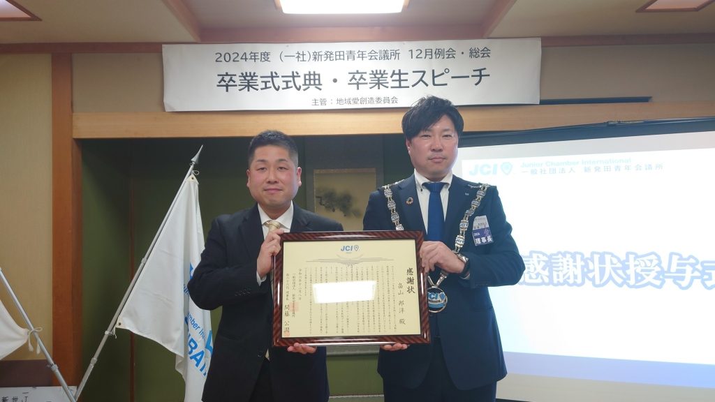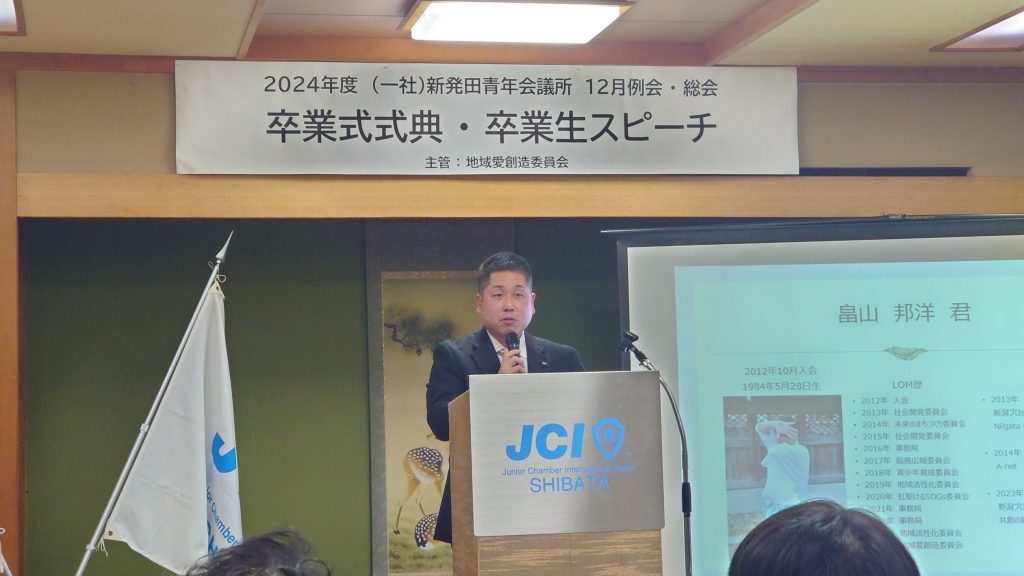 12月8日(日)割烹 魚松にて、一般社団法人新発田青年会議所の12月例会事業「卒業生スピーチ・卒業式」を実施しました。