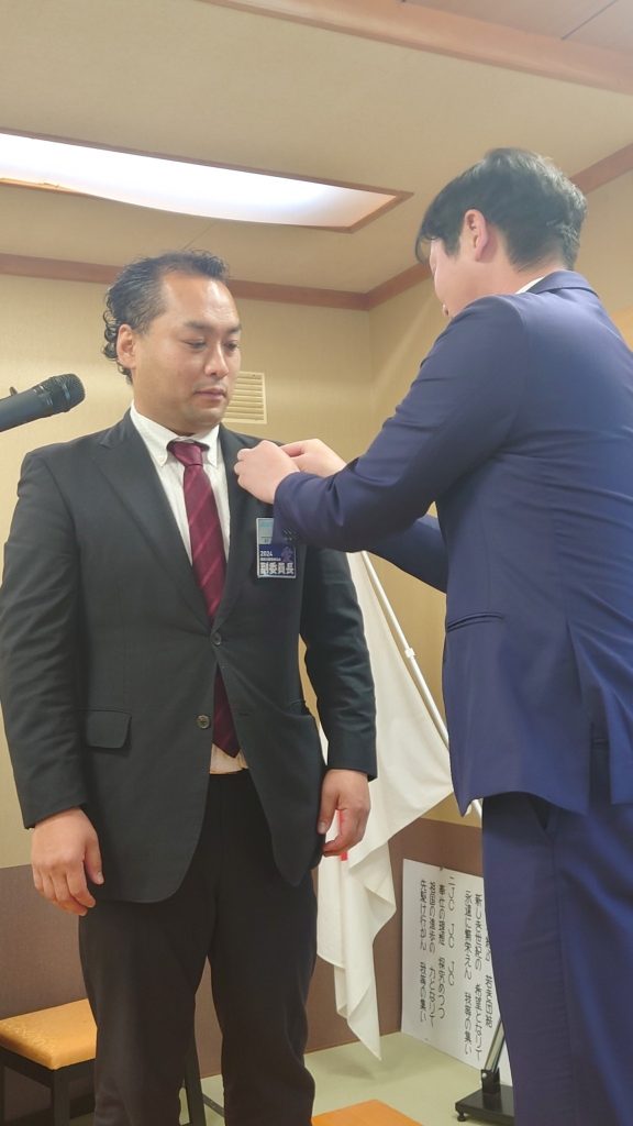 JCでは1年毎に役職が変わるため12月31日をもって間藤理事長、菊地専務理事、齋藤筆頭副理事長が任期を終え、桑野理事長予定者、村山専務理事予定者、小林筆頭副理事長予定者へとバトンが渡されます。バトンを受け取り次年度組織を運営していく予定者の方々からは2025年度の意気込みが話されました。