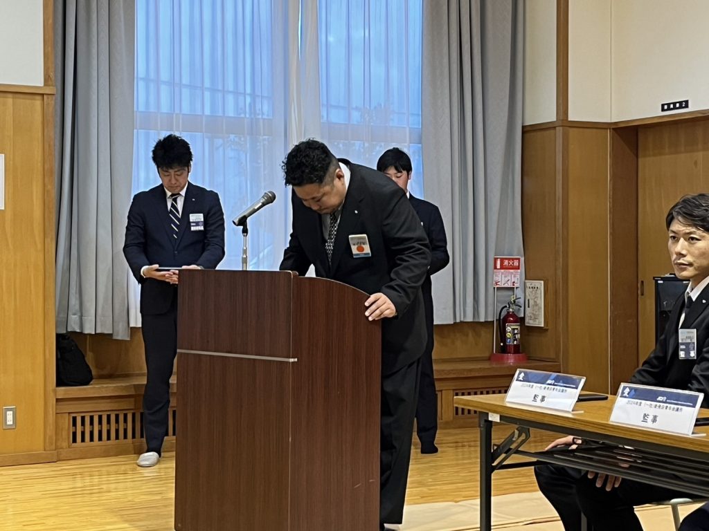 総会では、2025年度 (一社)新発田青年会議所 理事長予定者に桑野 孝章 君が承認されました。桑野理事長予定者から次年度への抱負を聞き、新発田青年会議所メンバーで次年度に向けて団結力を高めました。